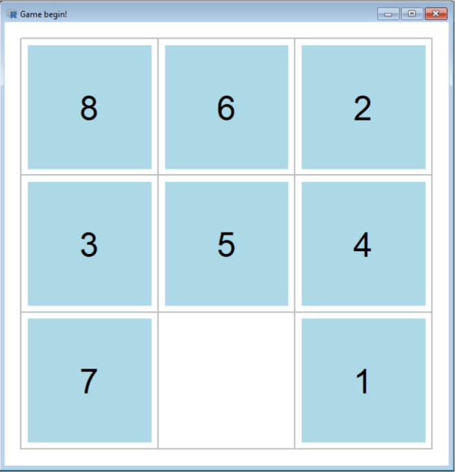 Now, let’s starting having some fun with R (see what I did there). First, let’s start off by opening up a sliding puzzle game. To open up the sliding puzzle, use this line of code: sliding_puzzle()