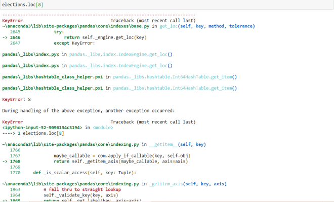 As you can see, when we try to access the data-frame’s head after deleting it, we get a NameError telling us that the name elections is not defined. This confirms that the data-frame was successfully deleted.