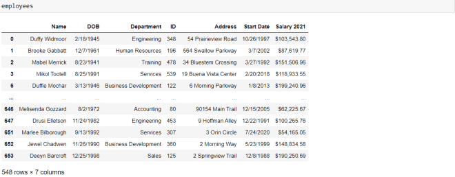 Last but not least, I mentioned that two employees’ records are duplicated. Let’s see how we can remove duplicate values from a data-frame: