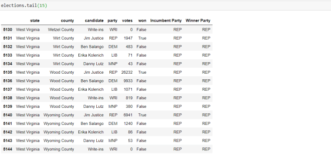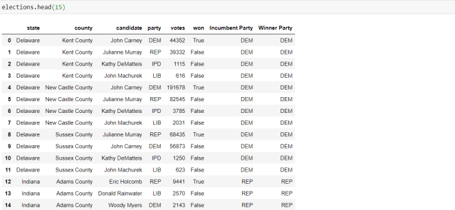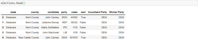 Now, let’s see what the elections data-frame looks like (remember to run the line elections on your IDE):