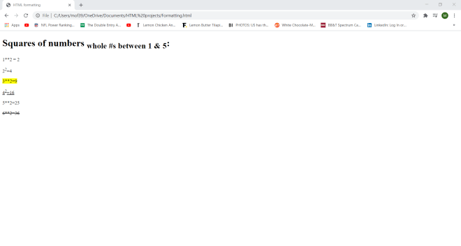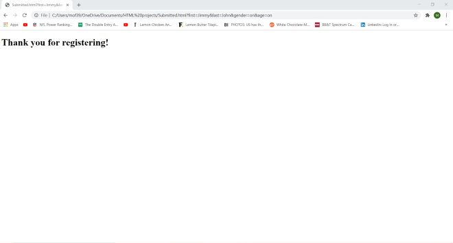 Now, what would inline content look like on an HTML webpage. Take a look at the form code that I posted above. There are three inline elements scattered throughout the form-<label>, <input>, and <br>-which denote a label for a form element, an inpute element for a form, and a line break between each section of the form, respectively.