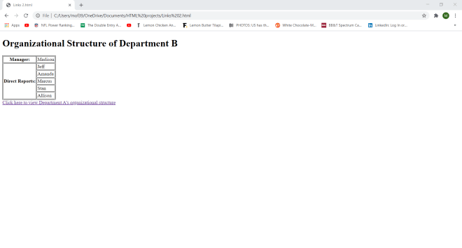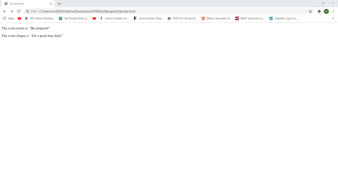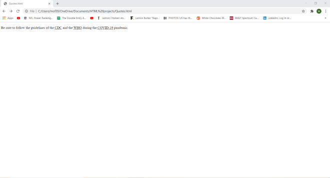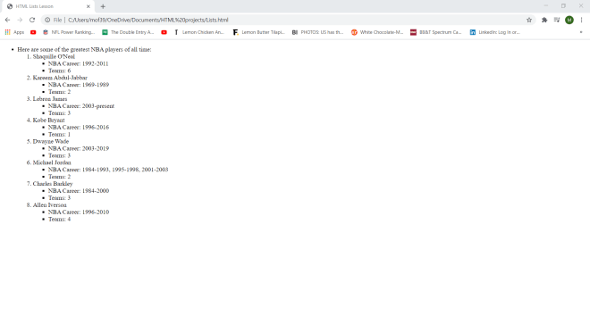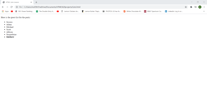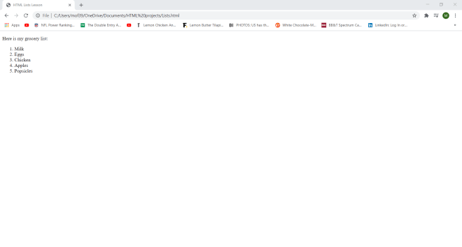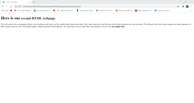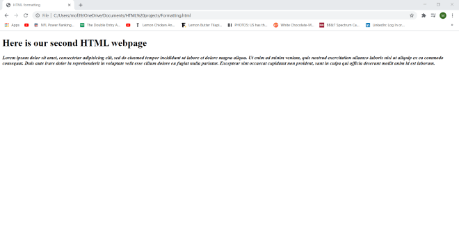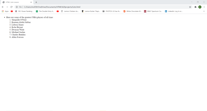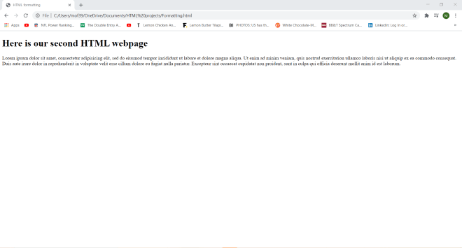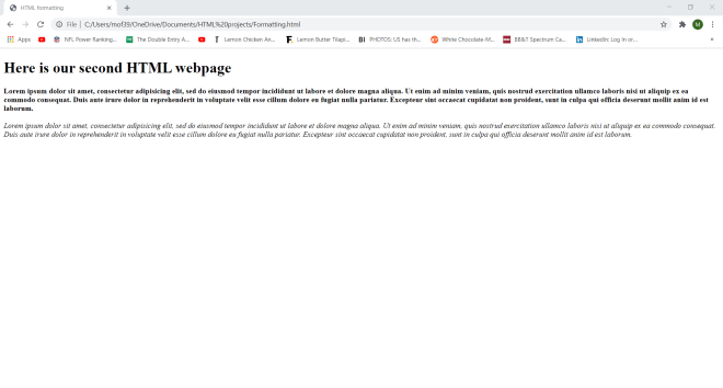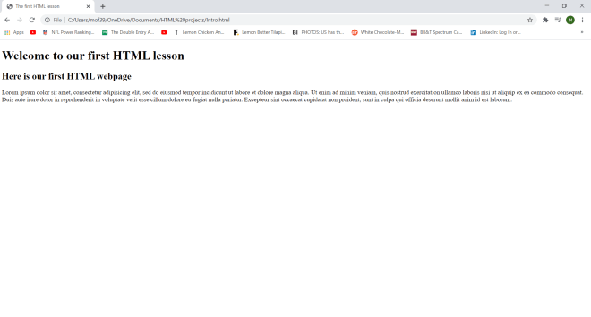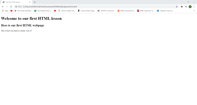 Wonder why I set a container class in my <div> tag? Well-although I won’t be doing so in this lesson-the container class will allow me to apply a certain CSS styling (color, font, size, etc.) to every element in the container. Let’s say I wanted to make all the text red and change the font to Comic Sans. I could easily do so with CSS simply by calling this <div> tag and applying the appropriate styling (I’ll discuss how to work CSS styling in the future).